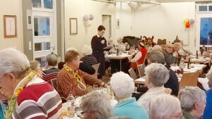 Am Donnerstagnachmittag trafen sich die Senioren der Kolpingsfamilie und der Pfarrgemeinde Mettingen zu einem karnevalistischen bunten Nachmittag im Mettinger Pfarrheim. Pünktlich um 15:00 Uhr konnte mit dem Kaffeetrinken begonnen werden. Fast 80 Senioren und Seniorinnen hatten sich hier versammelt, teilweise auch karnevalistischen verkleidet. In gewohnt lockerer Weise wurden sie durch Mathilde Gielsok und Irmgard Heidemann begrüßt. Nach dem Kaffeetrinken gab es den ersten Höhepunkt, denn der Nikolaus gab sich die Ehre, die Senioren und Seniorinnen zu besuchen. Scheinbar hatte er im Dezember nicht alle Orte wetterbedingt erreichen können, sodass er heute in Mettingen noch einen Zwischenstopp machte. Nach dieser Einlage ging es dann mit lustigen Liedern und ebensolchen Vorträgen, die das Organisationkomitee vorbereitet hatte, weiter. Auch die Mitarbeiterinnen des Köllbach-Hauses brachten sich mit zwei netten Vorträgen in das Gesamtprogramm mit ein. Immer wieder wurde auch angestimmt, “Da simmer dabei, das ist prima, Viva Sankt Agatha“. Gegen 18:00 Uhr nahte dann so langsam das Ende der Veranstaltung. Viele fleißige Hände halfen mit, sodass das Pfarrheim wieder in den Zustand versetzt wurde, sodass weitere Gruppen es wieder nutzen können. Die Pastoralreferentin und Seniorenbeauftragte Irmgard Heidemann dankte allen Aktiven, die zum guten Gelingen dieses bunten karnevalistischen nachmittags beigetragen hatten.